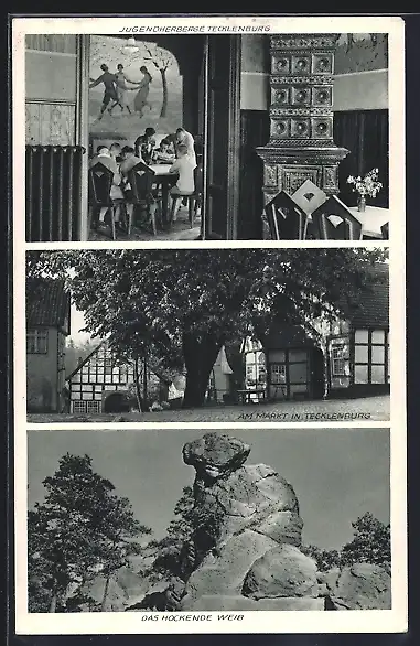 AK Tecklenburg, Innenansicht der Jugendherberge, Markt, das hockende Weib