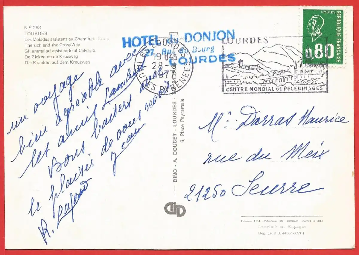 Motiv: Frankreich - Lourdes : Die Basilik. Verlagsangaben: France, A. Doucet, 1977.