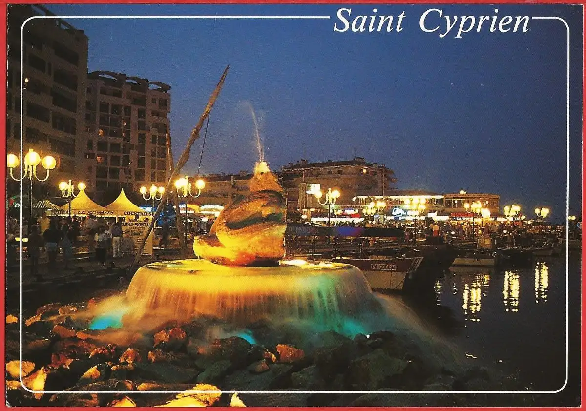 [Ansichtskarte] Frankreich (France) Pyrénées Atlantiques - Saint-Cyprien-Plage : Fontaine et port de plaisance / Fountain and marina / Brunnen und Yachthafen.