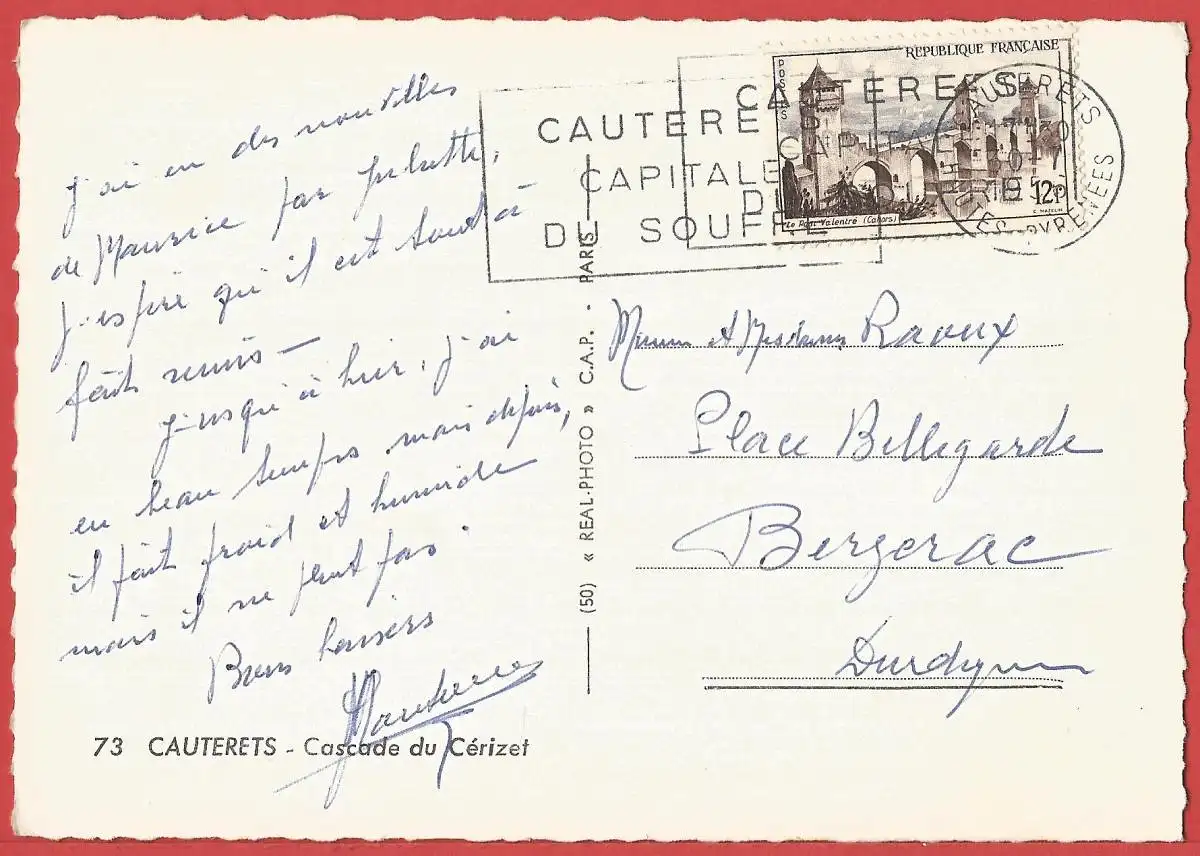 Motiv: La cascade du Cérizet. Verlagsangaben: CAP, 1956, 73.