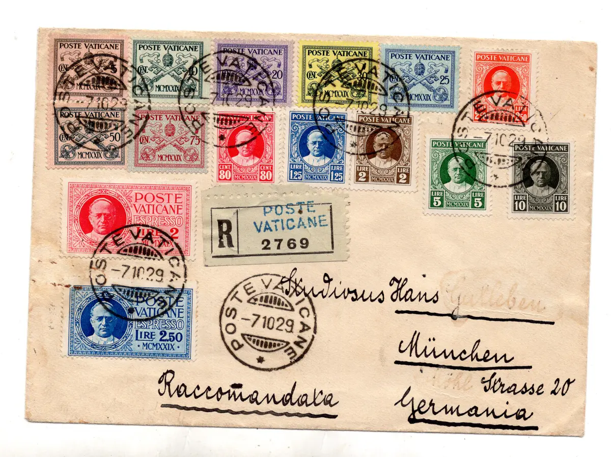 - Schlichtungsnr. 1/13 + Exp. 1/2 der kompletten Serie auf Umschlag Racc. für Deutschland am 7.10.29 - Ungewöhnlich - Kat. 250 (925/19)