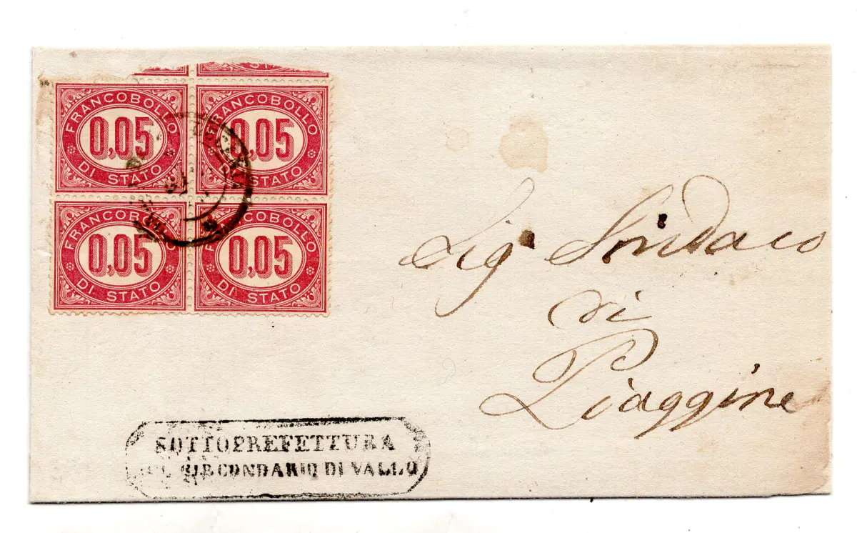 Cent Service. 5 Nr. 2 Viertel gut zentriert auf Falz für Piaggine - Ann. unklarer Anfang, Ann. Ankunft Piaggine 1.6.75 - Uncommon - Kat. euro 360 - Gebraucht Nr. 201/20