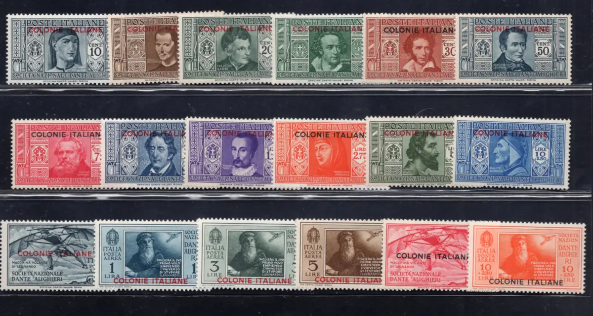 MNH - Vollgummi - Allgemeine Emissionen - Dante Alighieri Nr. 11/22 + Luftpost Nr. 8/13 komplette Serie 18 perfekte neue Werte mit Vollgummi - Kat. euro 250 Cod. 2996/WEB