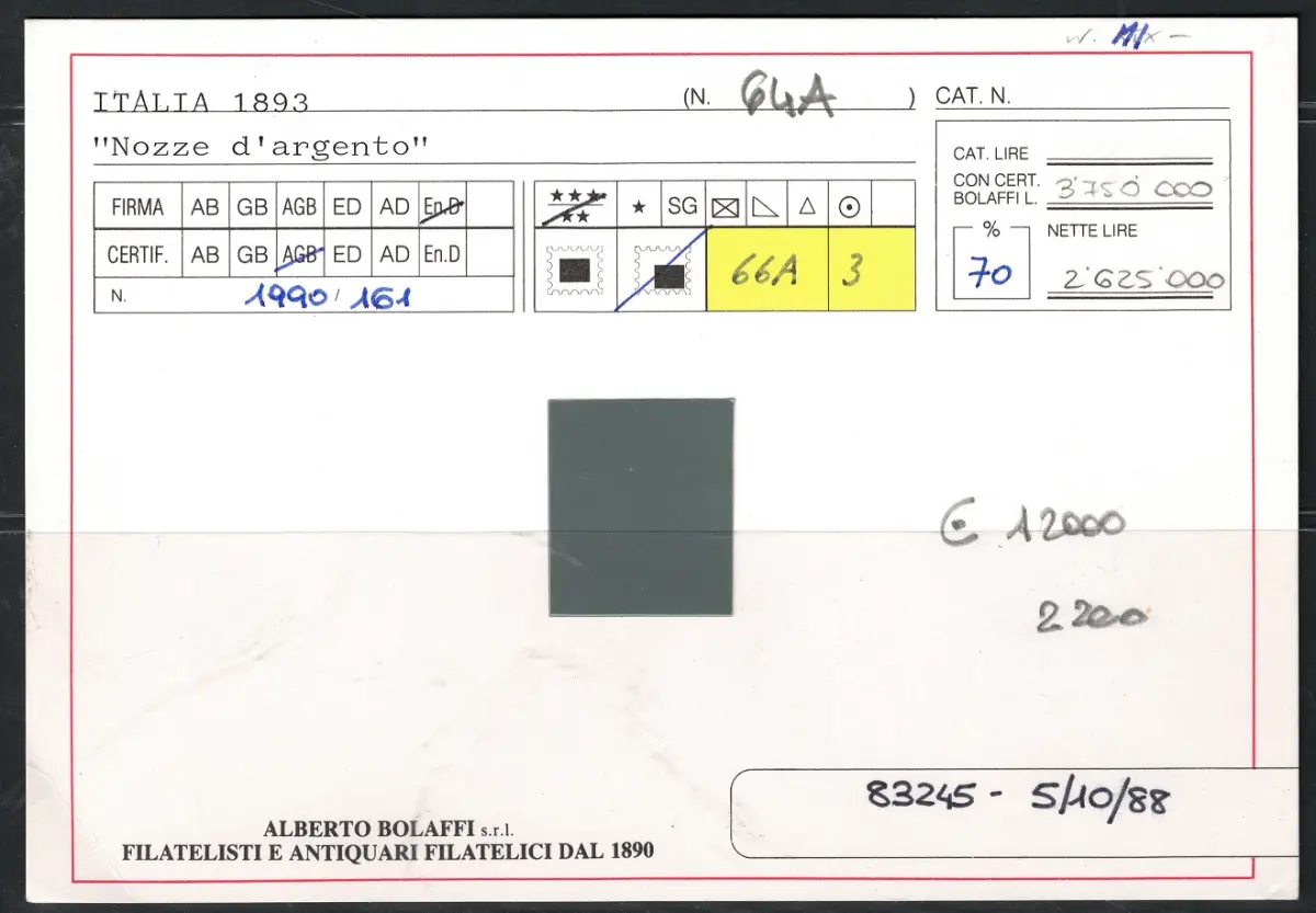 1893 Italien, Königreich, # 64A Silberhochzeit Umberto I., postfrisch ** Sächsischer Katalog Euro 12.000 - rote Box
