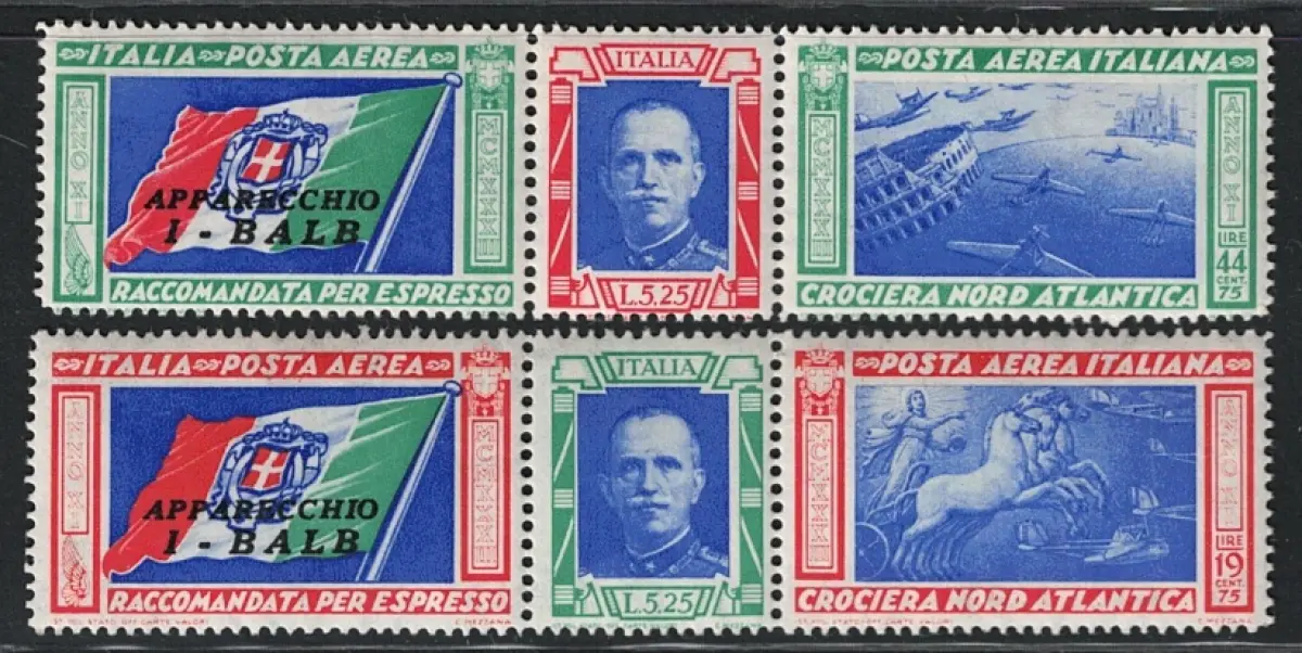 1933 Italien, Königreich, Luftpost, # 51A/52A, Tripttici Balb, MNH** 1933 Nordatlantik-Luftkreuzfahrt 1. Juli 12. August 1933 Die Luftkreuzfahrt des Jahrzehnts,oder Nordatlantikkreuzfahrt, oder auch 'Nordatlantik-Luftkreuzfahrt', auch bekannt als Luftkreuzfahrt 'Italien-Nordamerika', 'Orbetello-Chicago-New York-Rom' oder 'II Atlantikkreuzfahrt 1933, die die die zweite und letzte Transatlantikkreuzfahrt 1933 war.