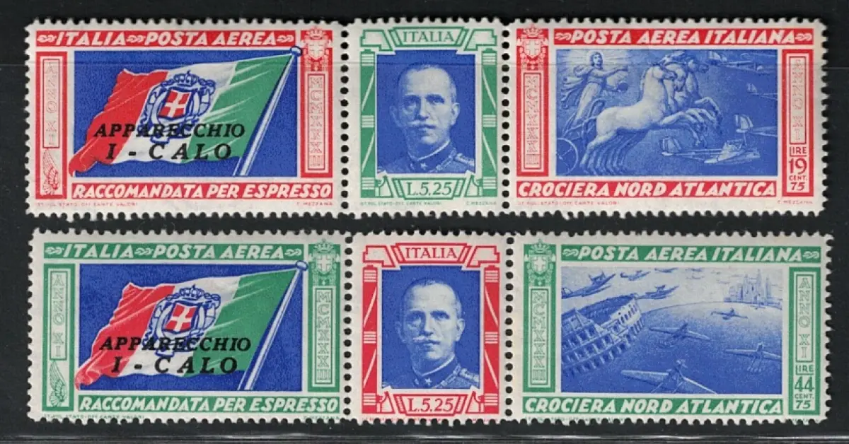 1933 Italien, Königreich, Luftpost, # 51E/52E, Tripttici Calo, MNH** 1933 Nordatlantik-Luftkreuzfahrt 1. Juli 12. August 1933 Die Luftkreuzfahrt des Jahrzehnts,oder Nordatlantikkreuzfahrt, oder auch 'Nordatlantik-Luftkreuzfahrt', auch bekannt als Luftkreuzfahrt 'Italien-Nordamerika', 'Orbetello-Chicago-New York-Rom' oder 'II Atlantikkreuzfahrt 1933, war die die zweite und letzte Transatlantikkreuzfahrt 1933.