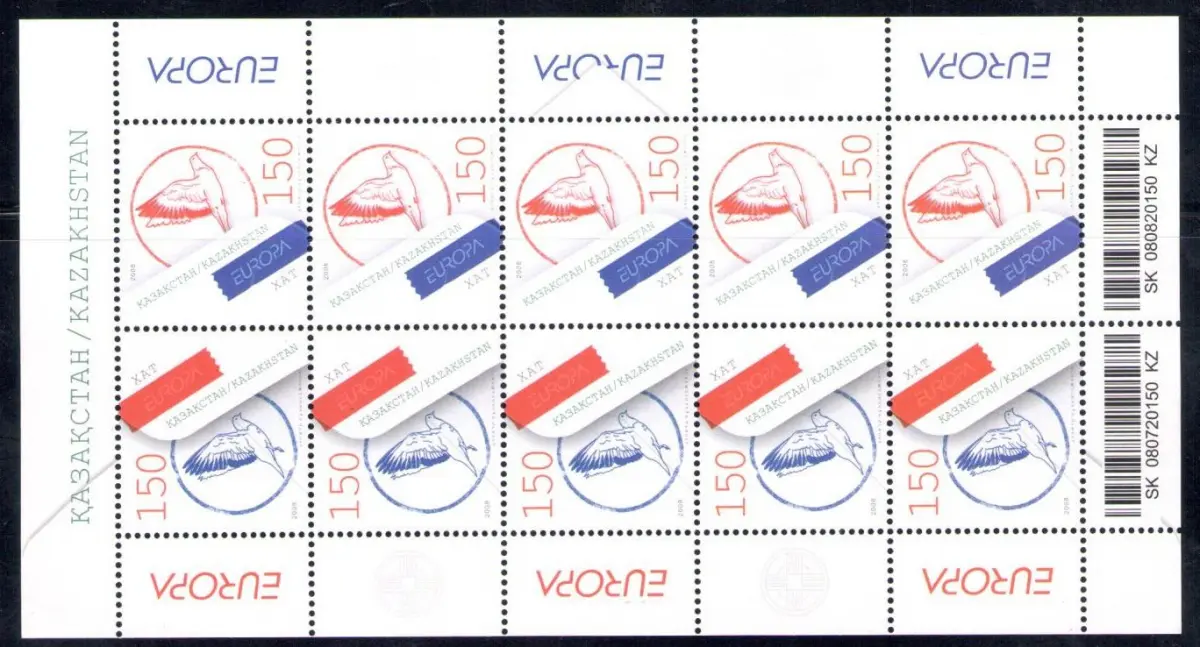 2008 EUROPA CEPT Kasachstan, 1 Kleinbogen mit 5 Paaren, postfrisch**, es handelt sich um neue und perfekte Kleinblätter mit Original- und Vollgummi.