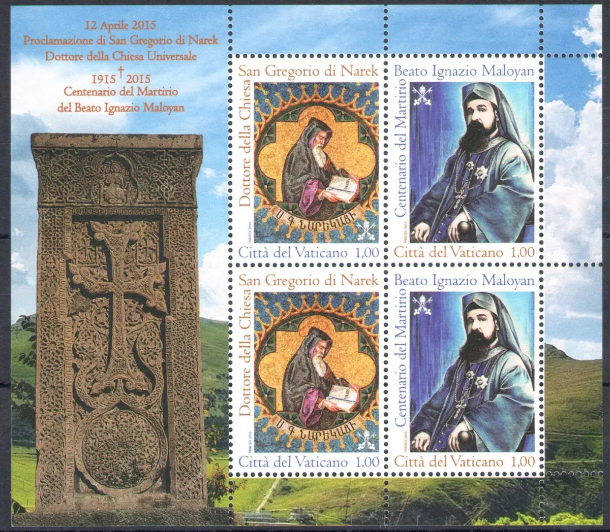 2015 Vatikan, Gregor von Narek und Märtyrer Ignatius Maloyan, Nr. 1706-07 Kleinbogen mit 2 Paaren postfrisch **
