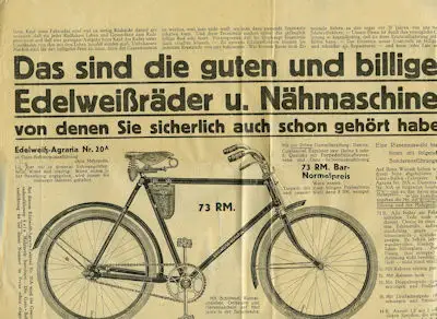 Edelweiß Fahrrad Prospekt 1930er Jahre