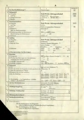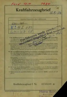 Ford Taunus 12 M Original Fahrzeugbrief 1954