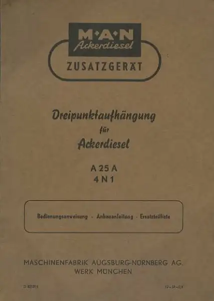 MAN Schlepper Zusatzgerät Bedienungsanleitung 1960er Jahre