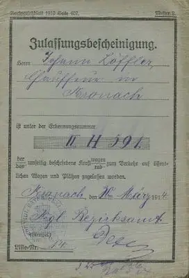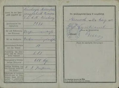 4 Seiten 17 x 11 cm Nürnberger Motorfahrzeuge-Fabrik Union GmbH (Maurer-Union) II H 591 (Kronach) FIN 2255, 12 PS für 4-5 Personen Leichte Gebrauchsspuren