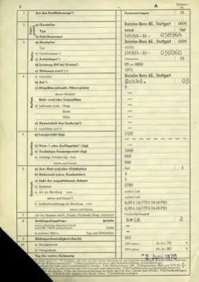 Mercedes Benz 200/8 Original Fahrzeugbrief 1970