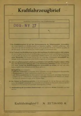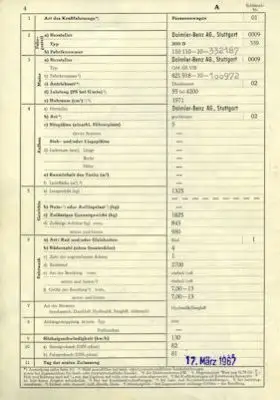 Mercedes Benz 200 D Original Fahrzeugbrief 1967