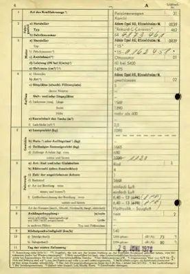 Opel Rekord C Caravan Original Fahrzeugbrief 1970