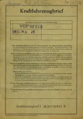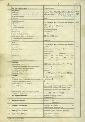 Opel Rekord P 1 Original Fahrzeugbrief 1958
