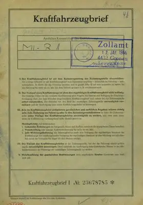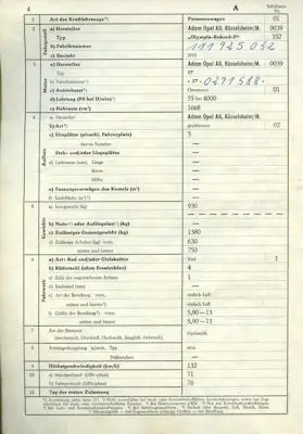 Opel Rekord P 1 Original Fahrzeugbrief 1961 1700 cm