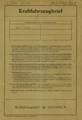 Opel Rekord R 3 (A) Original Fahrzeugbrief 1963