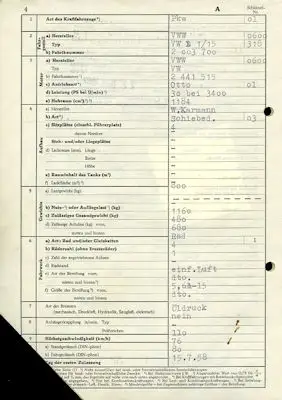 VW Karmann Original Ersatz-Fahrzeugbrief 1958/1966