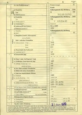 VW Typ 36 Original Fahrzeugbrief 1970