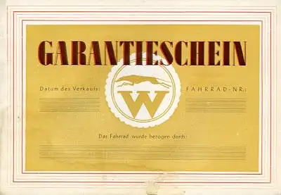 Windt Fahrrad Garantiekarte 1950er Jahre