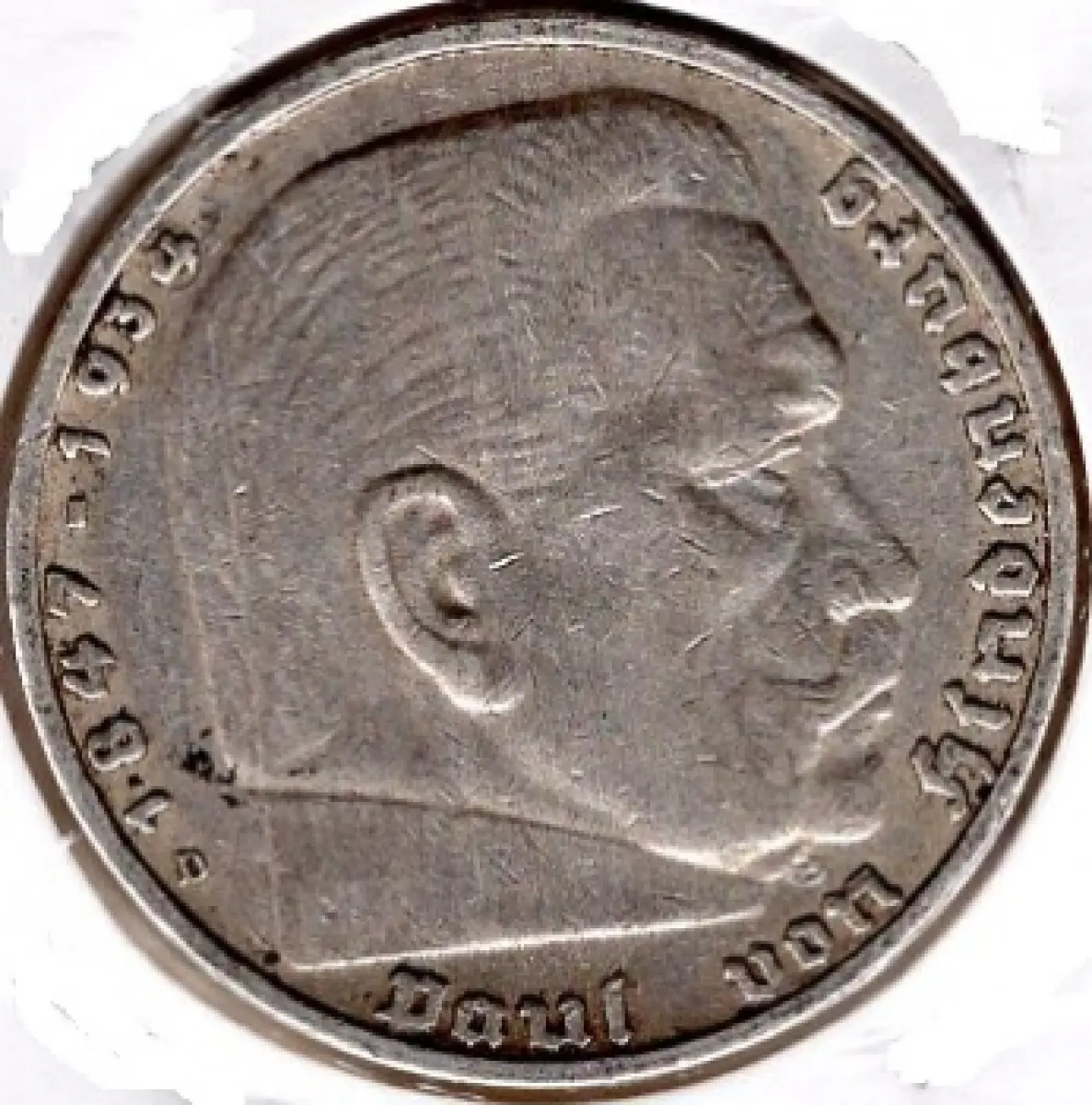 Jäger 0367 - 5 Reichsmark 1937 D Hindenburg Hakenkreuz Silbermünze