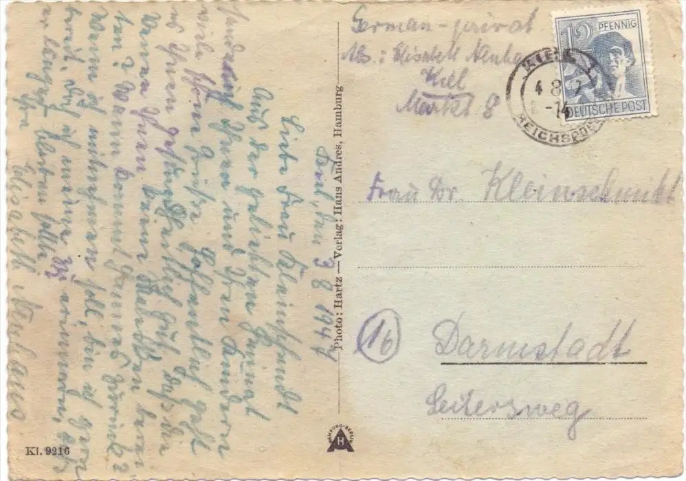 2300 KIEL, Hafen, 1947, Poststempel Kiel Reichspost