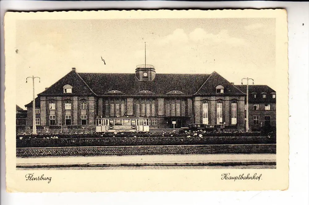 2390 FLENSBURG, Hauptbahnhof, Strassenbahn - Tram, NS-Beflaggung, 1936