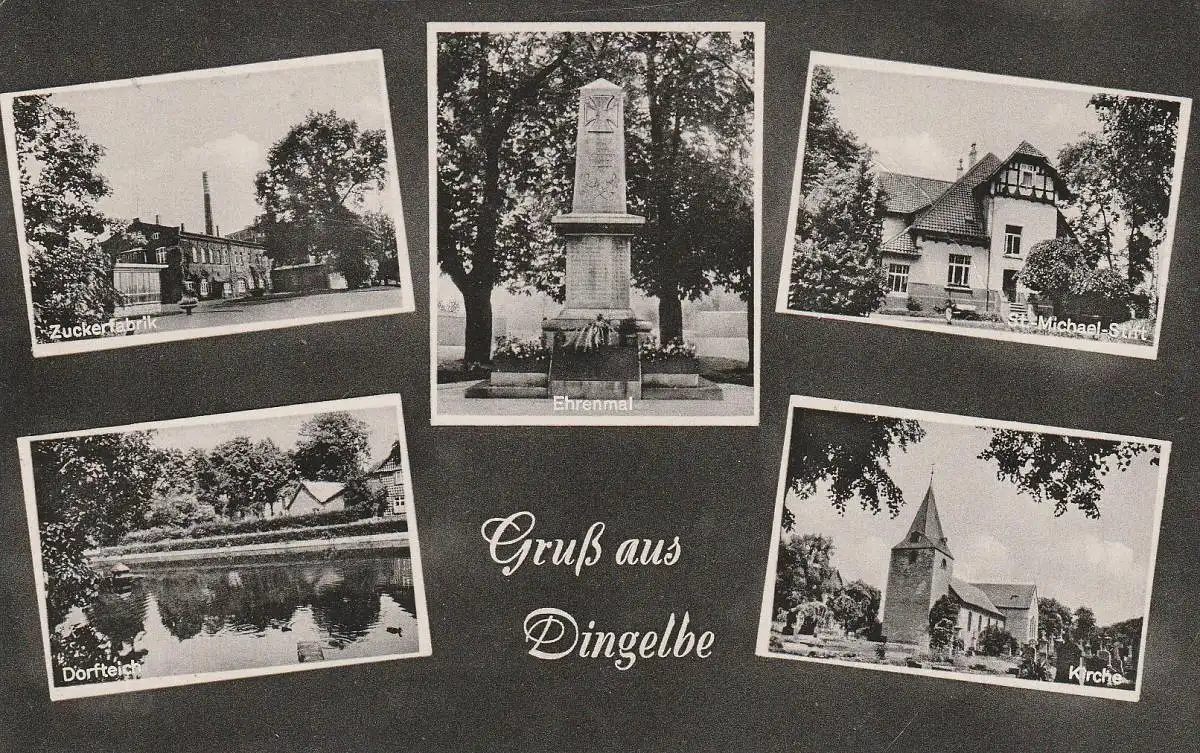 [Ansichtskarte] 3209 SCHELLERTEN - DINGELBE, Zuckerfabrik, Ehrenmal, Kirche..., 1966, leichte Druckstelle.