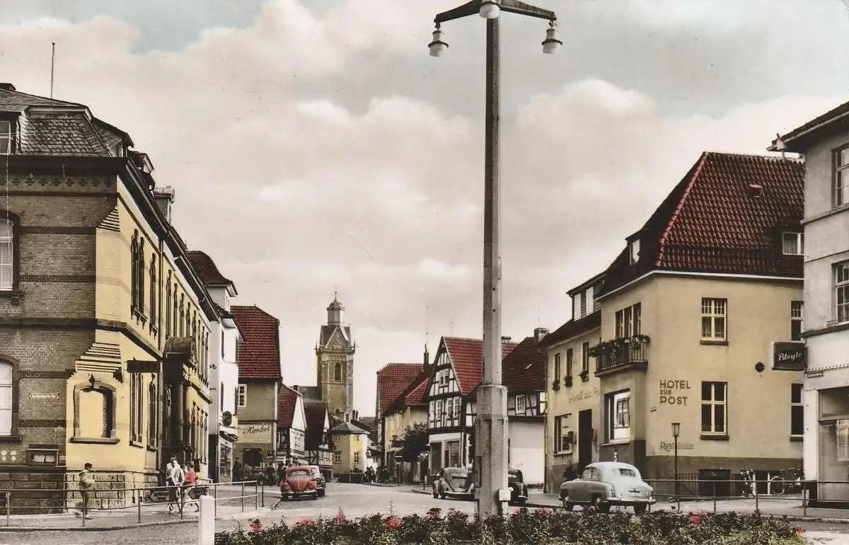 [Ansichtskarte] 3540 KORBACH, Prof. Bier Strasse, Hotel Zur Post, Oldtimer VW - Käfer, 1960.