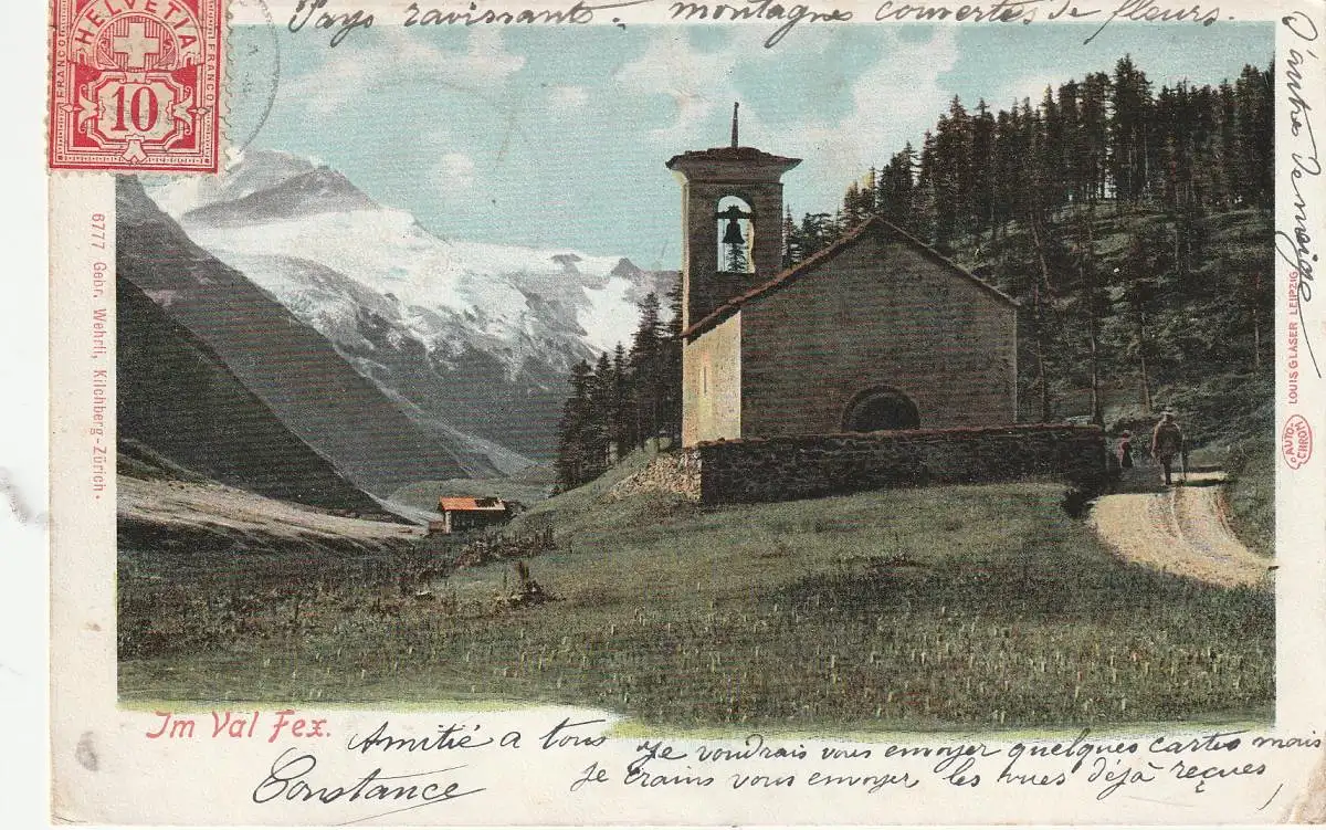 [Ansichtskarte] CH 4498 SILS - FEX GR, Kirche im Fextal, 1906.