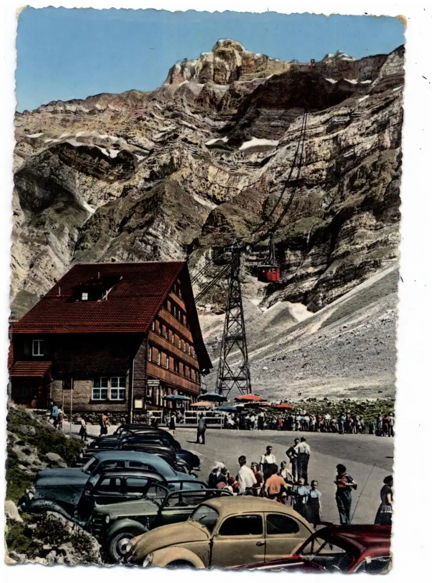 [Ansichtskarte] CH 9650 NESSLAU SG, Säntis Schwebebahn 1957, Oldtimer .... VW - KÄFER.