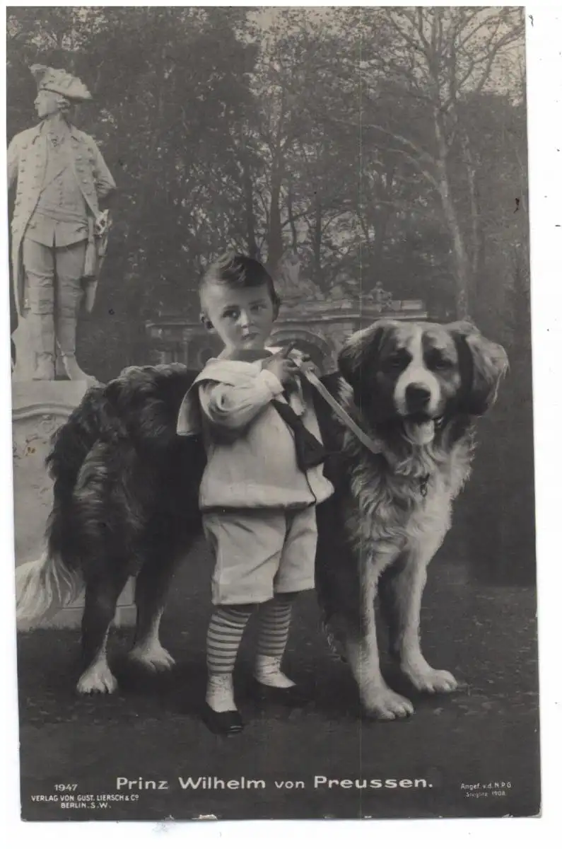Titel: MONARCHIE - DEUTSCHLAND, Prinz Wilhelm von Preussen, Bernhardiner Hund, Verlag Liersch