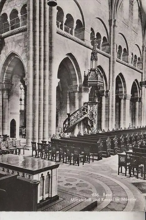 CH 4000 BASEL, Münster zu Basel, Mittelschiff und Kanzel