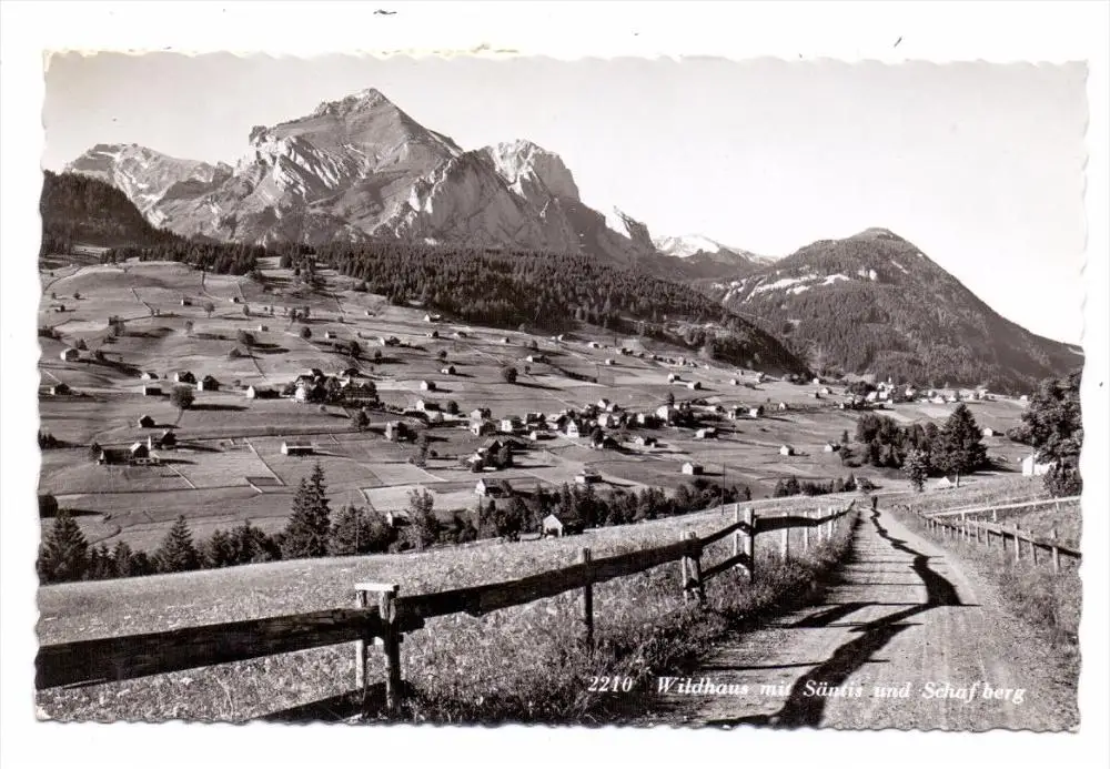CH 9658 WILDHAUS, Ortsansicht mit Säntis & Schafberg, 1957