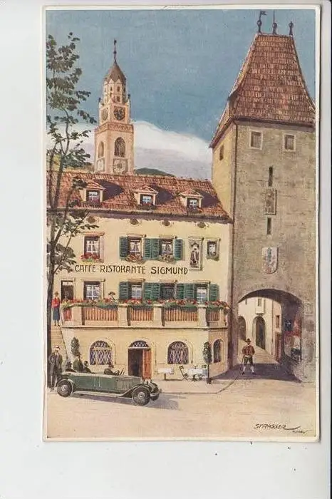 I 39012 MERAN, Caffe e Ristorante Sigmund, Piazza della Rena, signiert Strasser