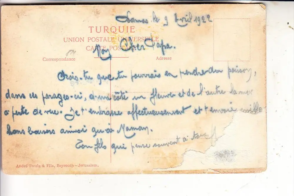 LIBANON - BEYROUTH, Fleuve du chien, 1922, kl. Randmängel