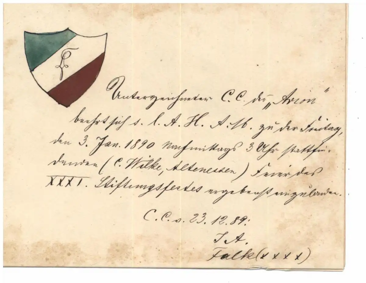 STUDENTICA - TEUTONIA KARLSRUHE, Einladung zum Stiftungsfest 1889