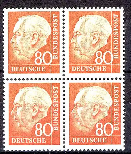 264v Heuss II 80 Pf Viererblock ** postfrisch