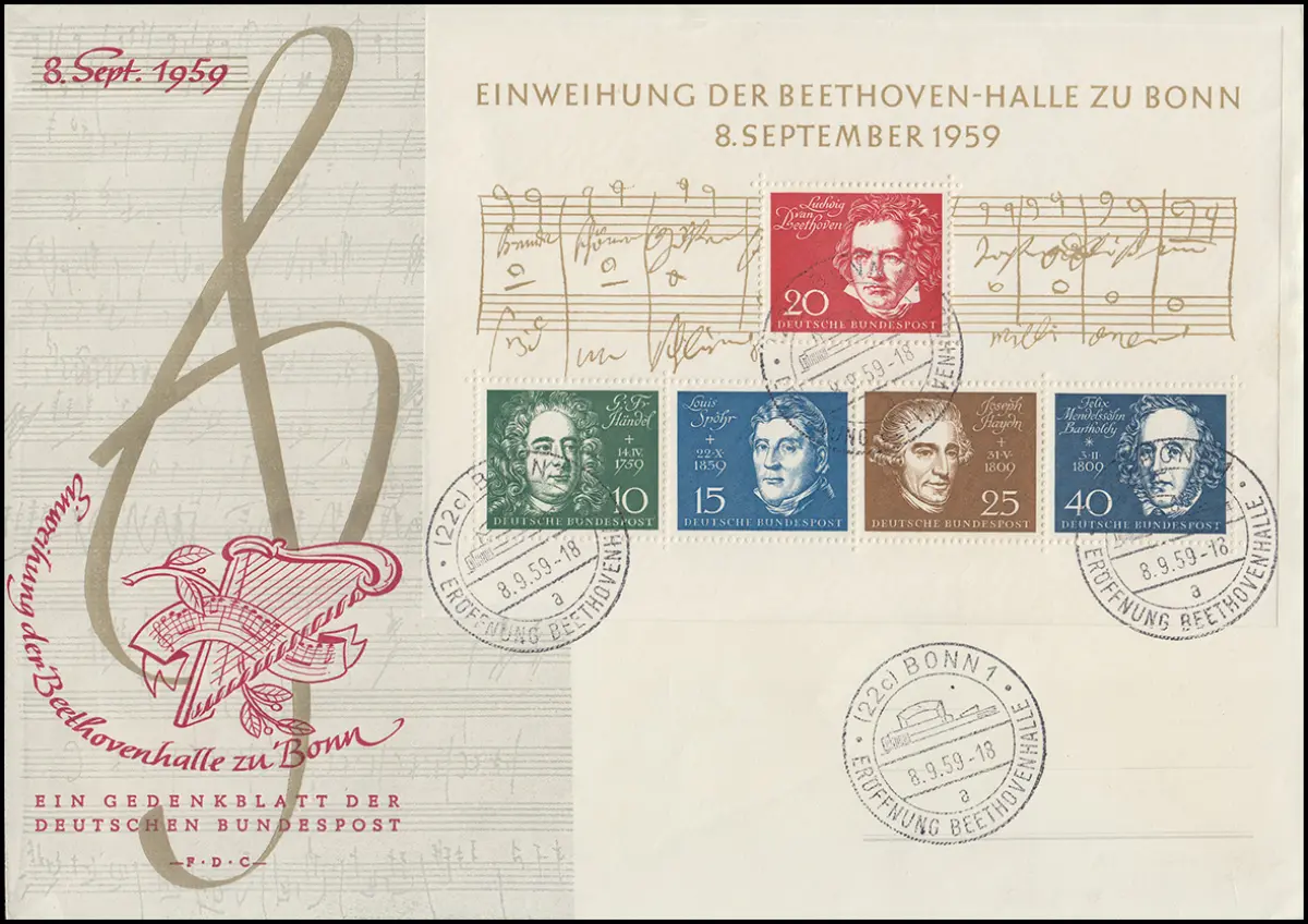 Block 2 Beethovenhalle 1959 Schmuck-FDC ESSt BONN 8.9.59 - Buchstabe a