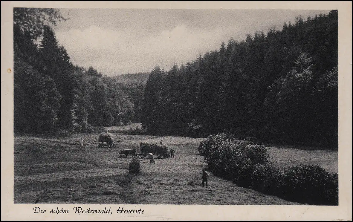 Landpost-Stempel 5231 Rettersen auf AK Westerwald Heuernte, ALTENKIRCHEN um 1961