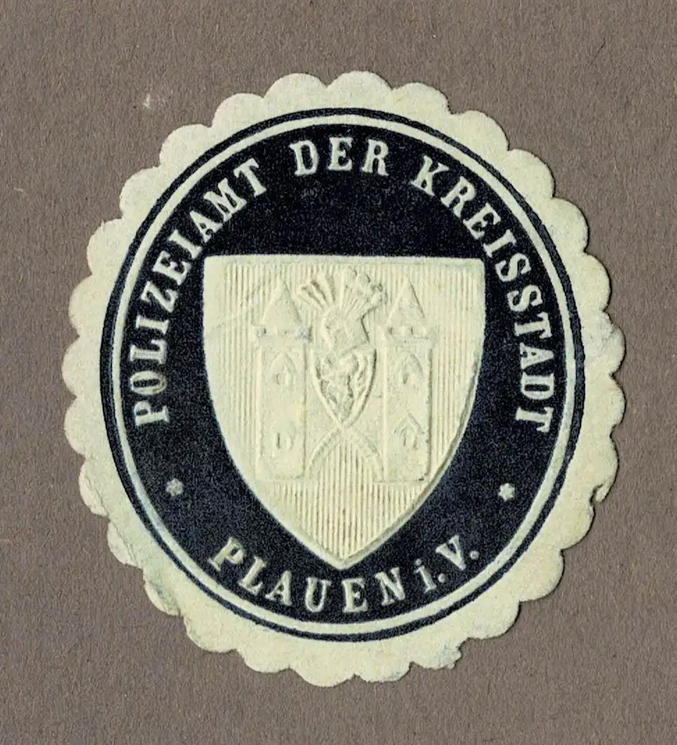 Siegelmarke Sachsen: POLIZEIAMT DER KREISSTADT PLAUEN i. V. (Vogtland)