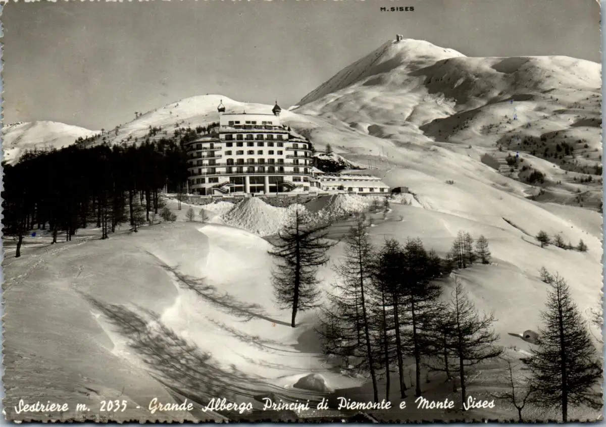 21492 - Italien - Sestriere , Grande Albergo Principi di Piemonte e Monte Sises - gelaufen 1955