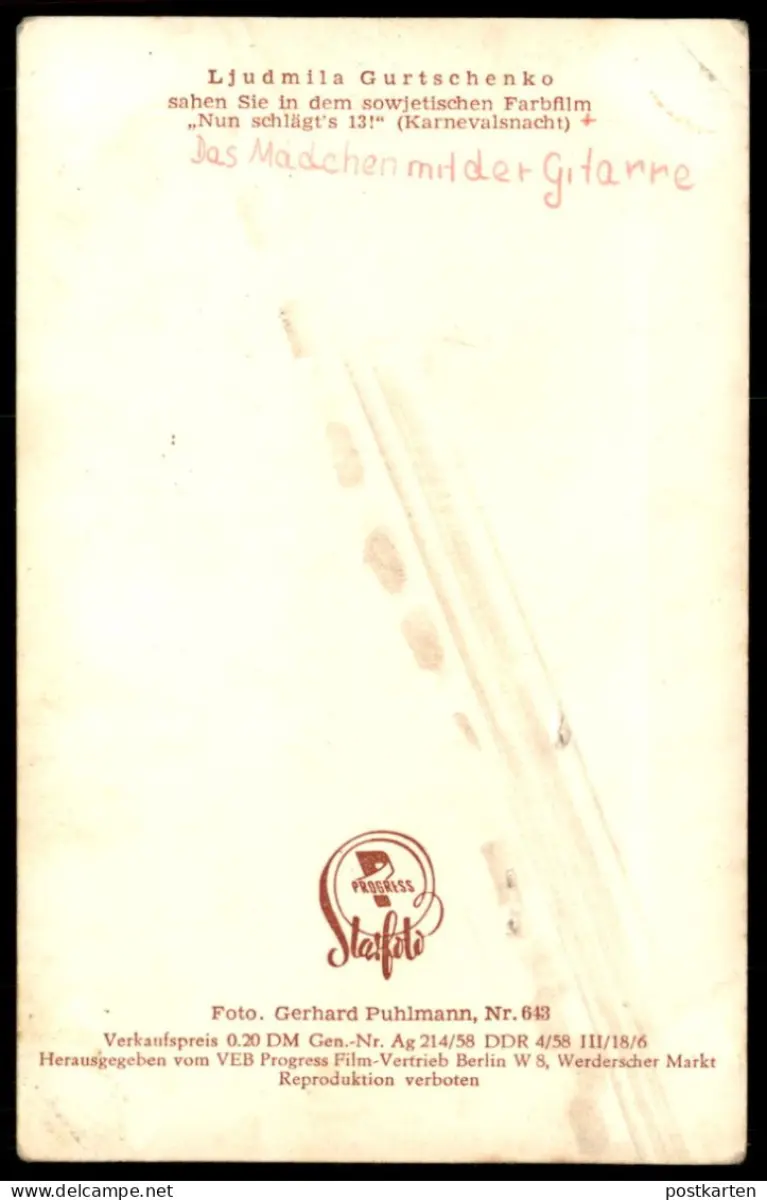 ALTE KARTE LJUDMILA GURTSCHENKO MIT COCKTAIL FILM-SCHAUSPIELERIN SAHEN SIE IN DEM SOWJETISCHEN FARBFILM NUN SCHLÄGT´S 13 (KARNEVALSNACHT)Verlag: Starfoto VEB Progress, Berlin, Foto: Gerhard Puhlmann