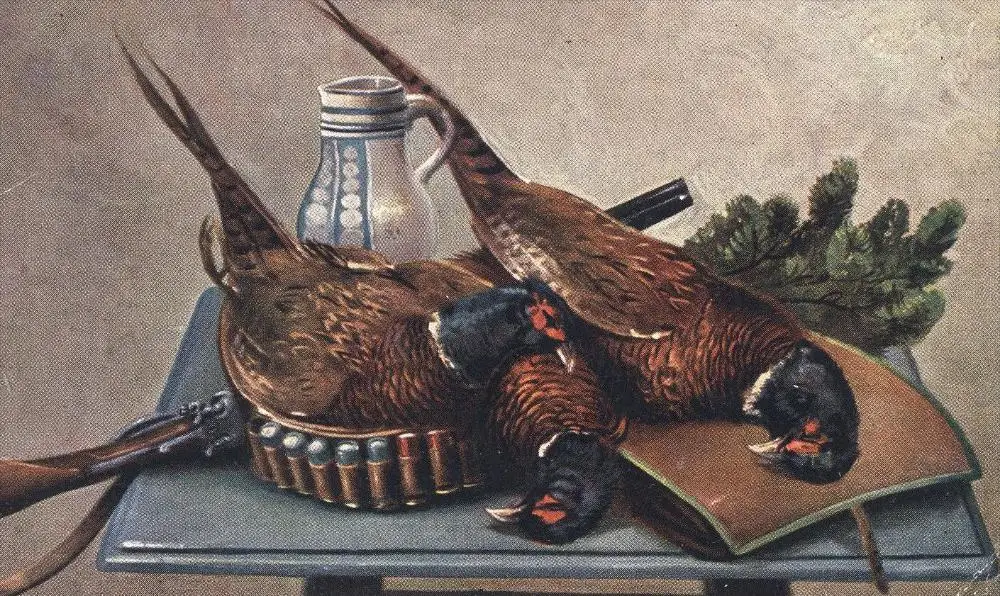 ALTE KÜNSTLER POSTKARTE FASAN ALS WILDBRET STILLLEBEN JAGD