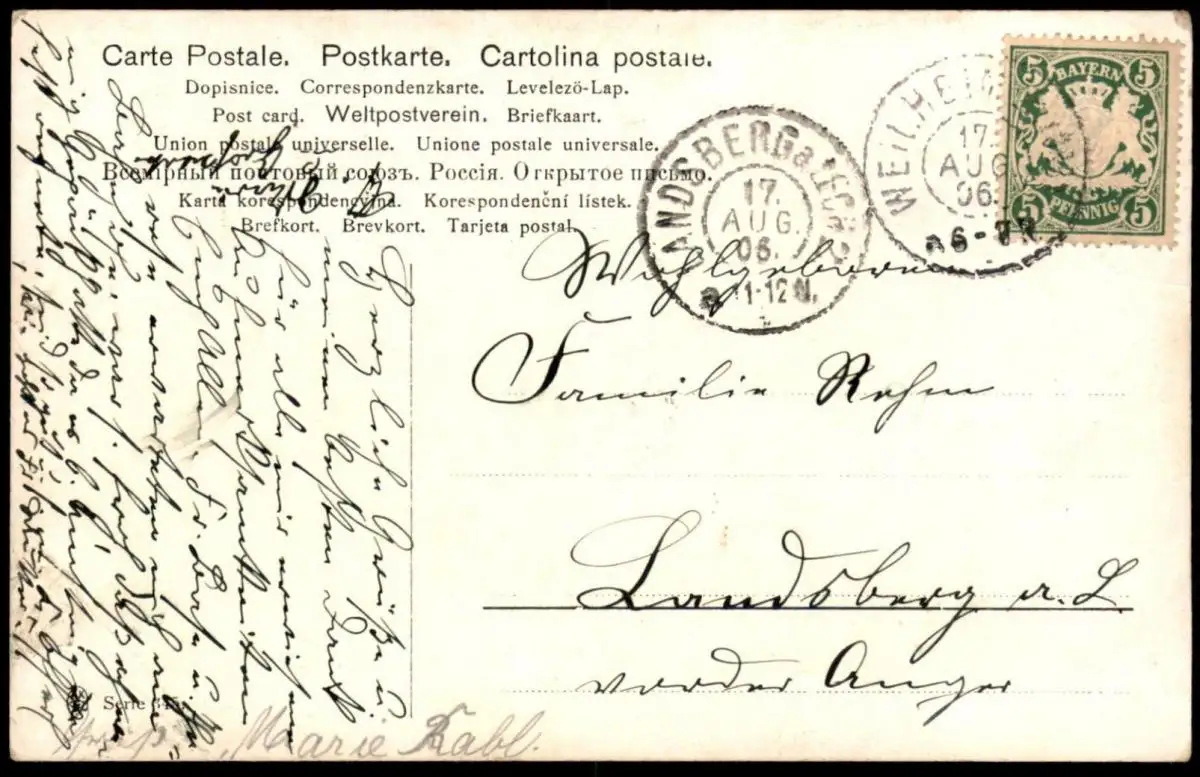 Gelaufen: 17.06.1906 mit Stempel Weilheim nach Landsberg am LechErhaltung (s. Scan): mittel, rechte untere Ecke bestoßen / 917129