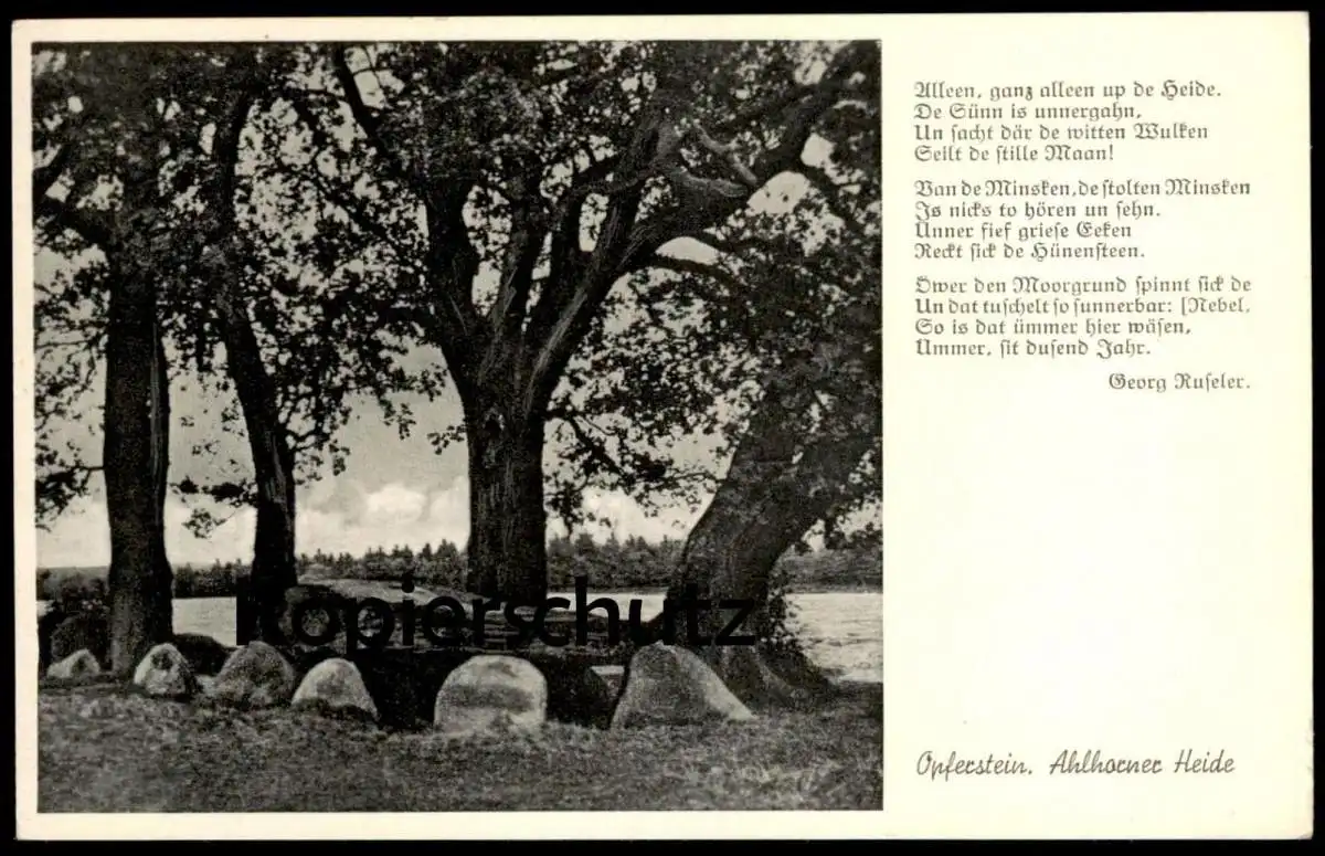 ALTE POSTKARTE AHLHORNER HEIDE ENGELMANNSBÄKE OPFERSTEIN HEIDENOPFERSTEIN GROSSSTEINGRAB GRAB VSIBEK GEDICHT GEORG RUSELERVerlag: Franz Lammersdorf, Haselünne