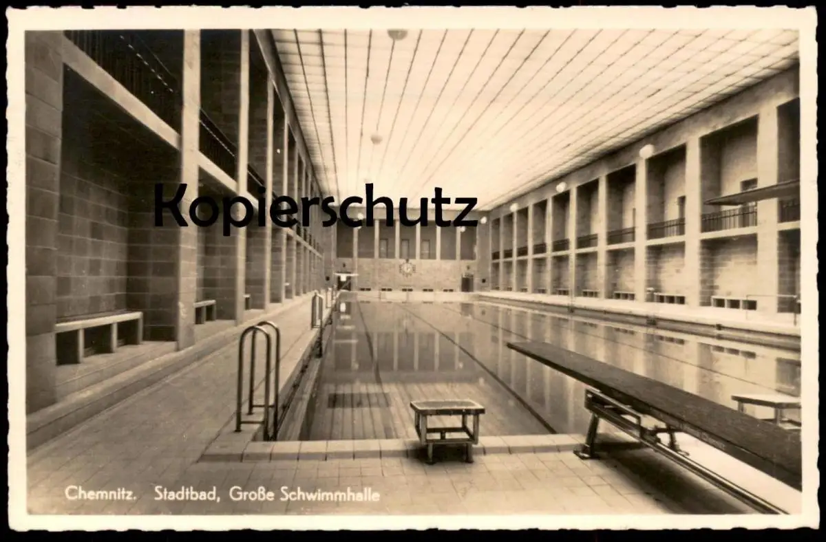 ALTE POSTKARTE CHEMNITZ STADTBAD GROSSE SCHWIMMHALLE Schwimmbad Bad bath Bauhaus Stil Architekt Fred Otto Ansichtskarte
