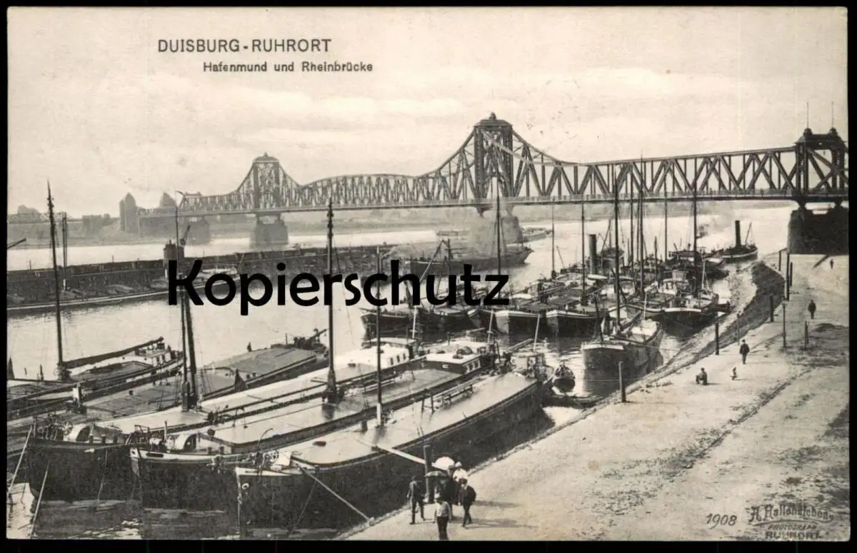 ALTE POSTKARTE DUISBURG RUHRORT HAFENMUND UND RHEINBRÜCKEVerlag: A. Hallensleben, Duisburg Ruhrort 1908Gelaufen: 10.11.1908 mit Stempel Alstaden nach Den HaagErhaltung (s. Scan): gut - sehr gut / 915775