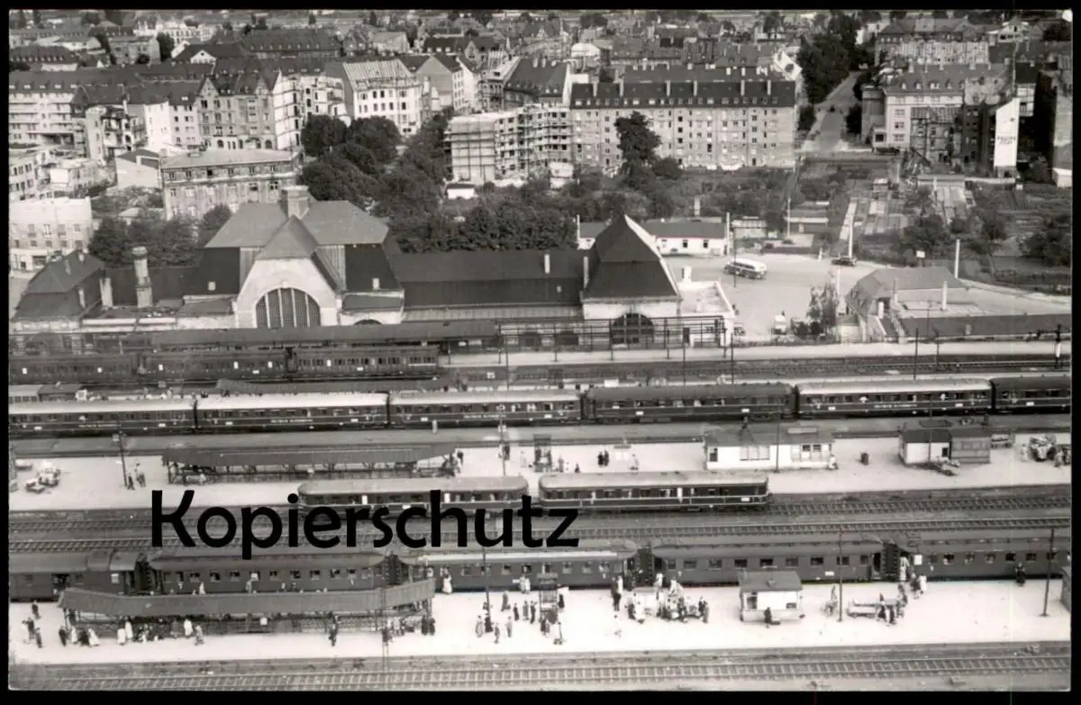 ALTE POSTKARTE KOBLENZ BAHNHOF LUFTBILD FLIEGERAUFNAHME TRIEBWAGEN LOKOMOTIVE WAGGONS DEUTSCHE BUNDESBAHN 1952Verlag: Carl Bellingrodt, Wuppertal Barmen